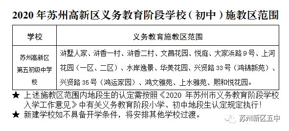2020年苏州高新区第五初级中学校入学政策公示