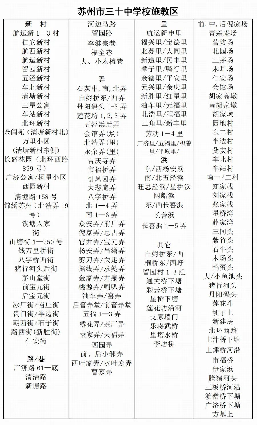 2020苏州市第三十中学施教区划分(2020苏州市第三十中学施教区划分图)