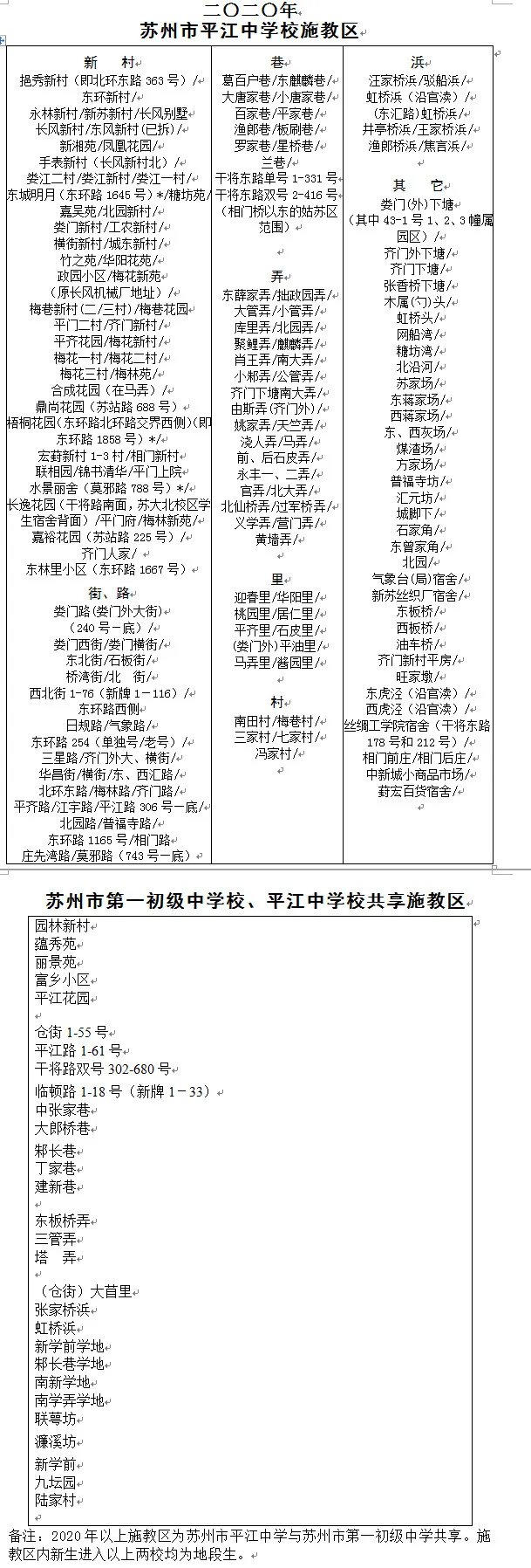 2020苏州市平江中学校学区范围(苏州平江中学入学条件 2020)