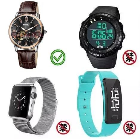 (p.s手表可携带机械表,不能带手环和带有显示屏的电子表!)