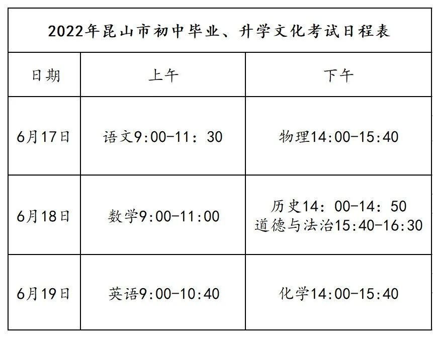 2021年昆山中考时间安排(2020昆山中考时间)