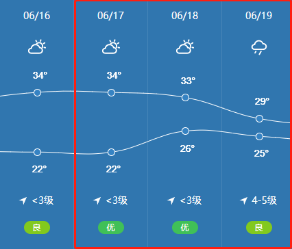 根据昆山市气象部门预报,中考期间天气如下,请广大考生携带好考试证件物品,提前抵达考点。
