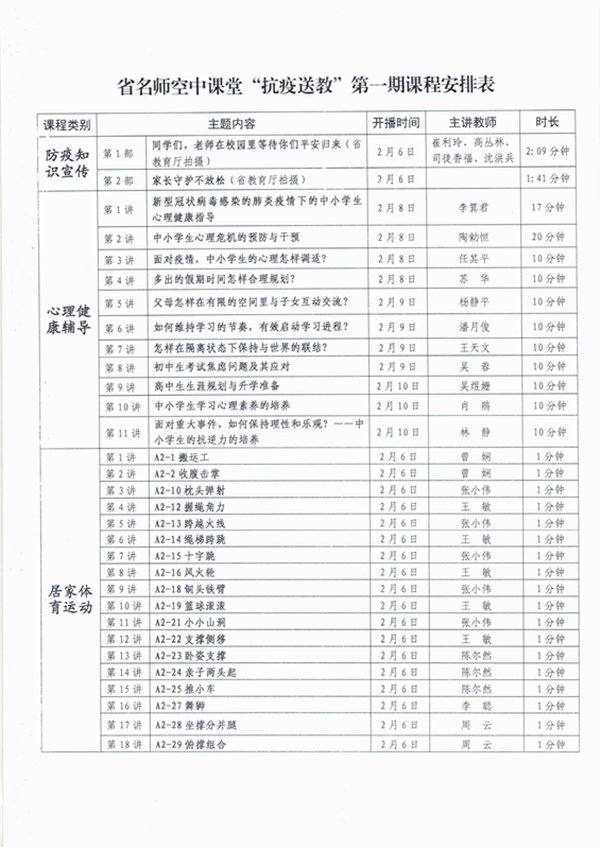 为坚决有力做好中小学新型冠状病毒感染肺炎的预防与控制工作,确保学生“停课不停学”。根据教育部和省委省政府的部署要求,省教育厅组织专家拍摄和遴选了“抗疫助学”系列课程,在省名师空中课堂的“有线电视端”和“网络端”同时播出,供中小学生在家自主学习和师生居家生活与锻炼使用。