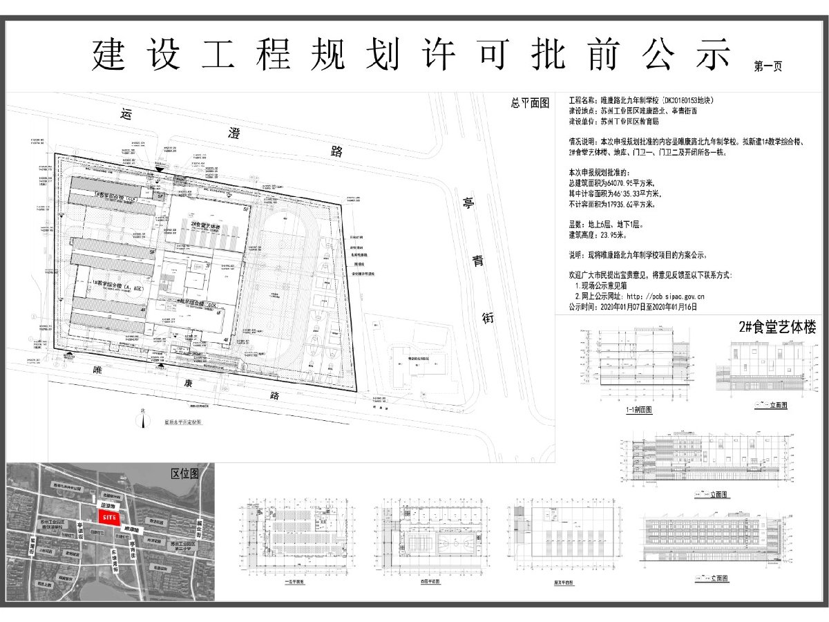 苏州唯康路北九年制学校方案公示 苏州工业园区唯康路北九年制学校