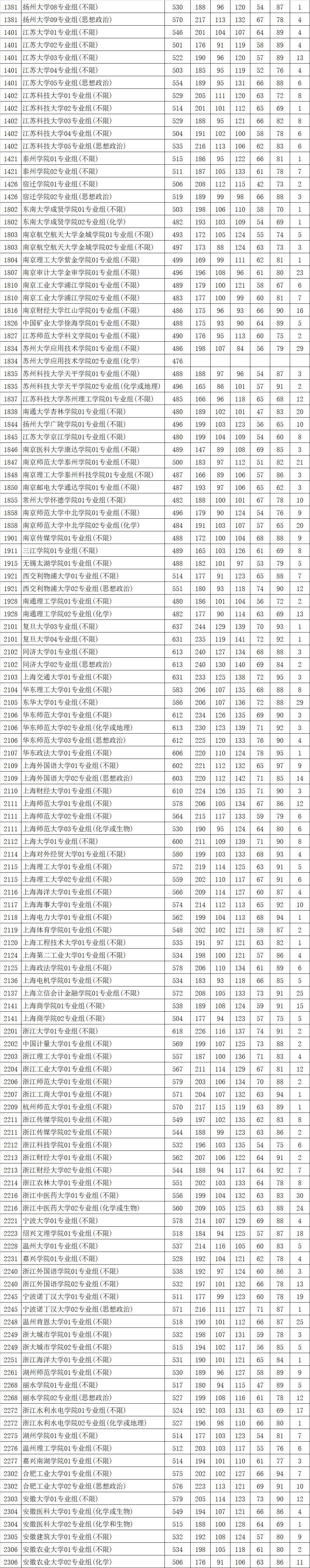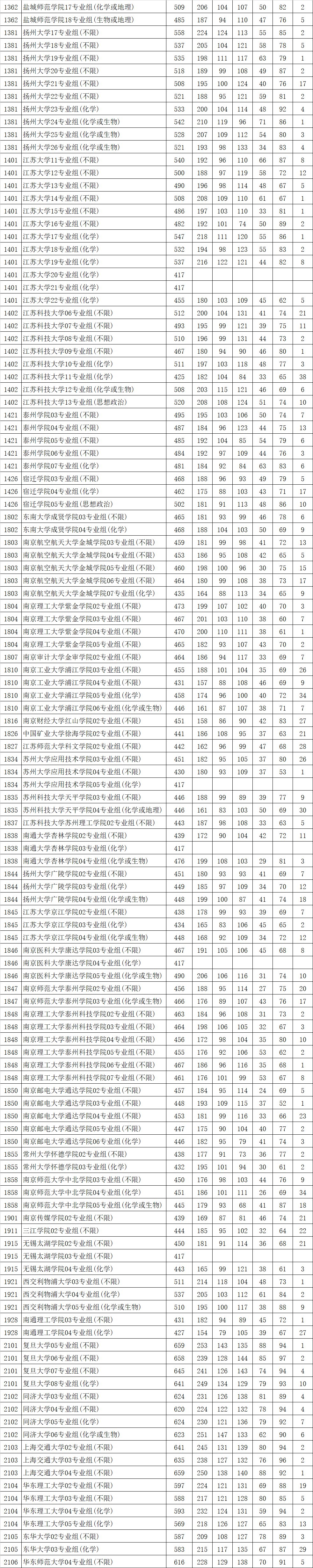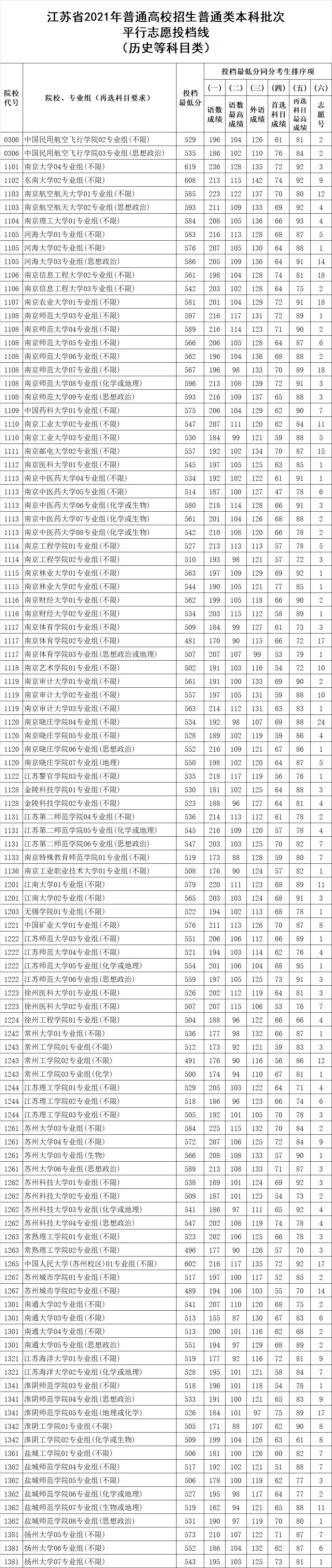 江苏省2021年普通高校招生普通类本科批次平行志愿投档线