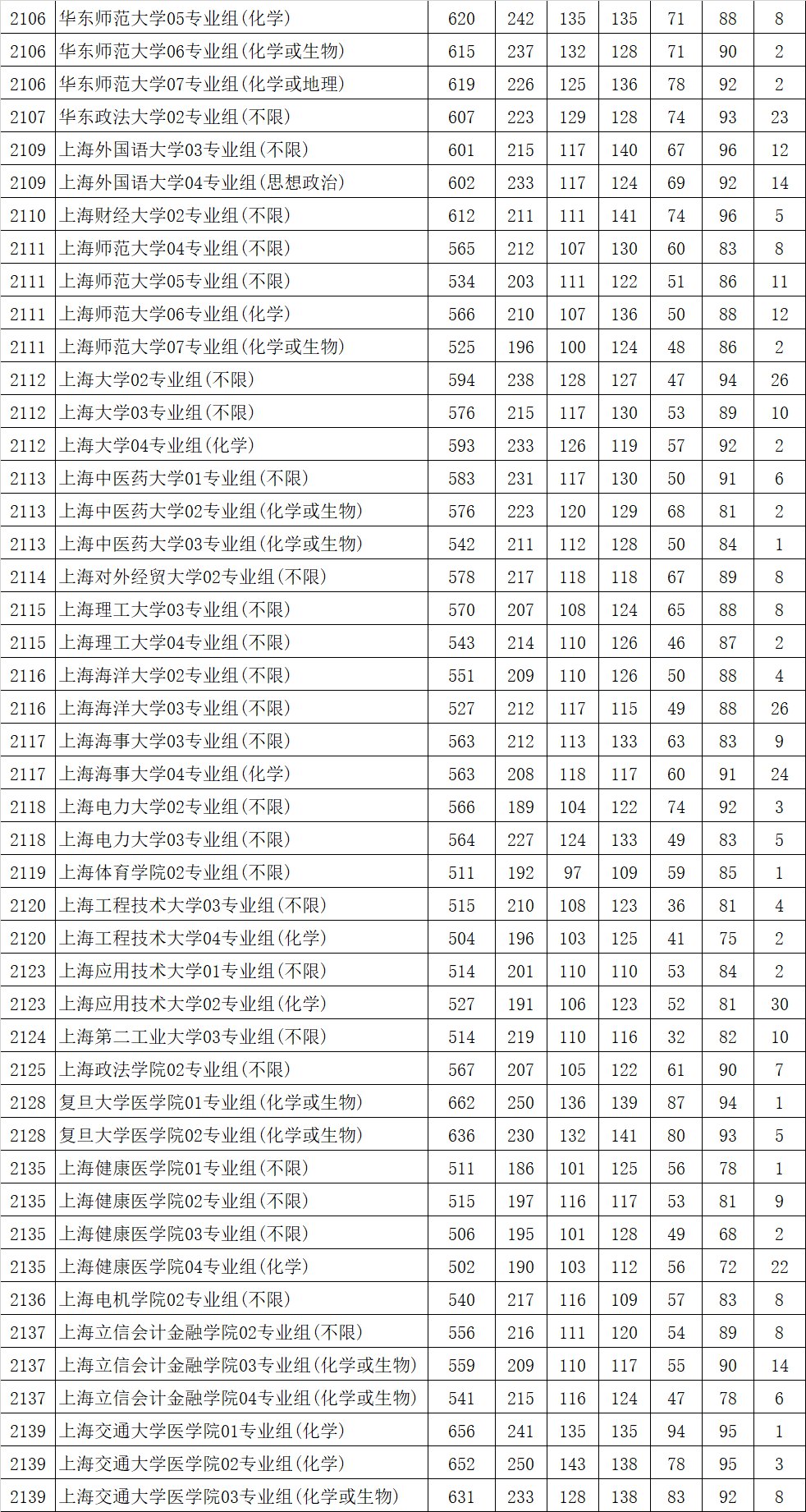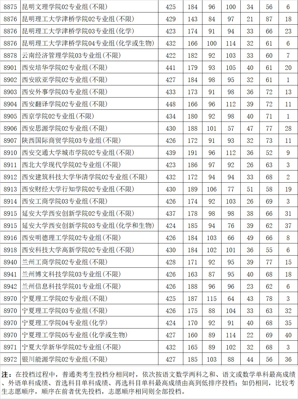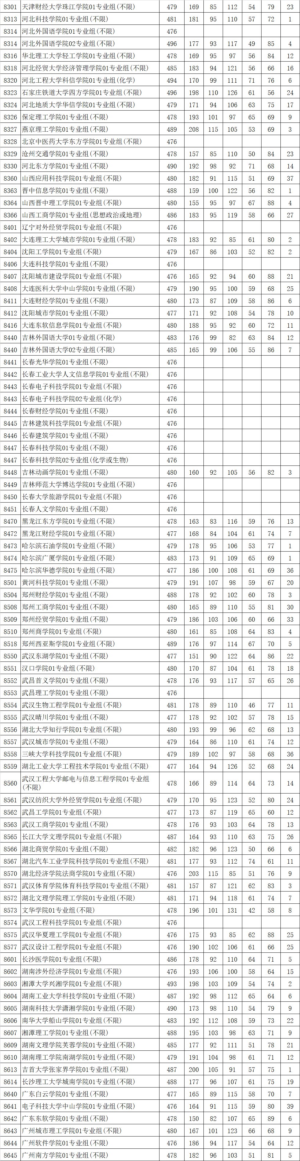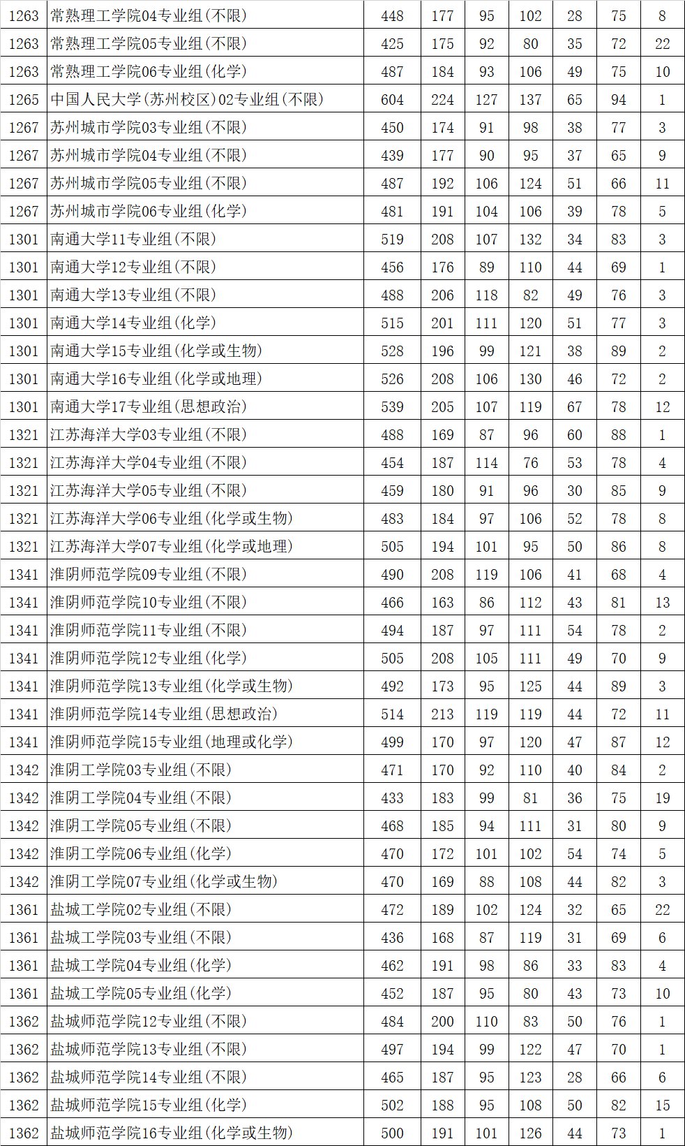 江苏省2021年普通高校招生普通类本科批次平行志愿投档线