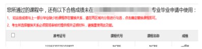 说明:部分专业证书课程成绩在自考系统中无法显示,在网上申报毕业时,此部分课程成绩选择“实践”录入实际分数,采购专业证书课程成绩≥60 分录入分数,50≤成绩<60 分的,填“免”。
