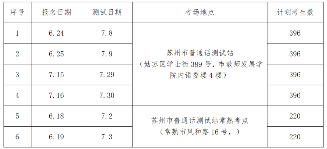2022年苏州普通话考试报名时间表 2022年苏州普通话考试报名时间表格