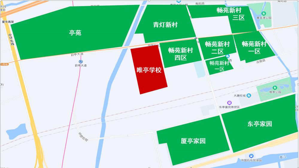 唯亭街道东区的东亭家园、厦亭家园、畅苑新村(1—4区)、亭苑、青灯新村。