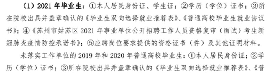 • 考生应认真阅读《苏州市姑苏区2021年事业单位公开招聘工作人员资格复审及面试疫情防控告知暨考生承诺书》并严格按照要求执行。