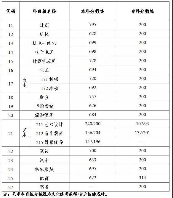 四、2021年对口单招本科和专科第一批次录取最低控制分数线