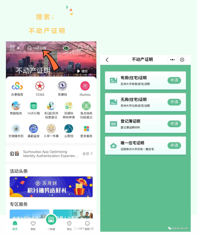 1. 合法固定住所证明;(打开苏周到APP→首页搜索不动产证明→有房(住宅)证明→点击保存)