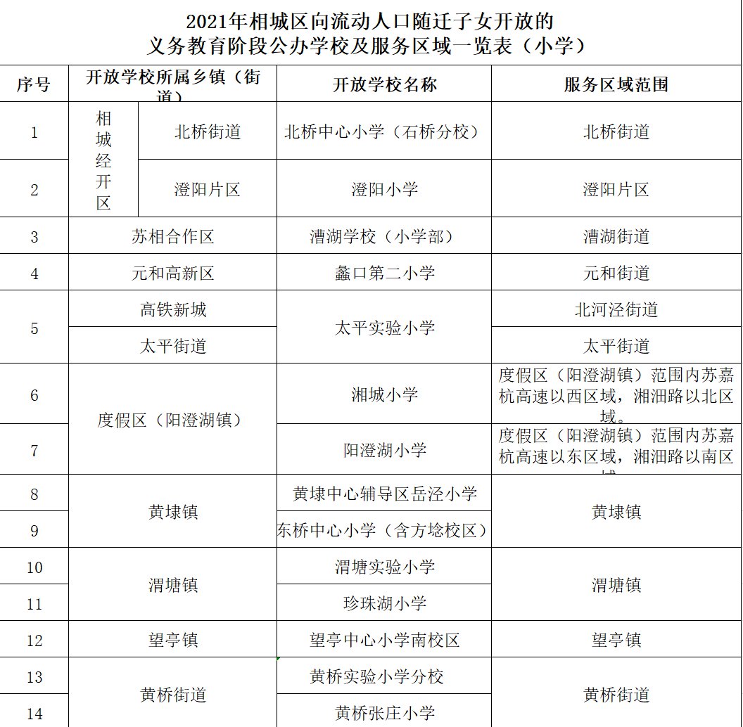 2021姑苏区积分入学开放公办学校和服务区域名单