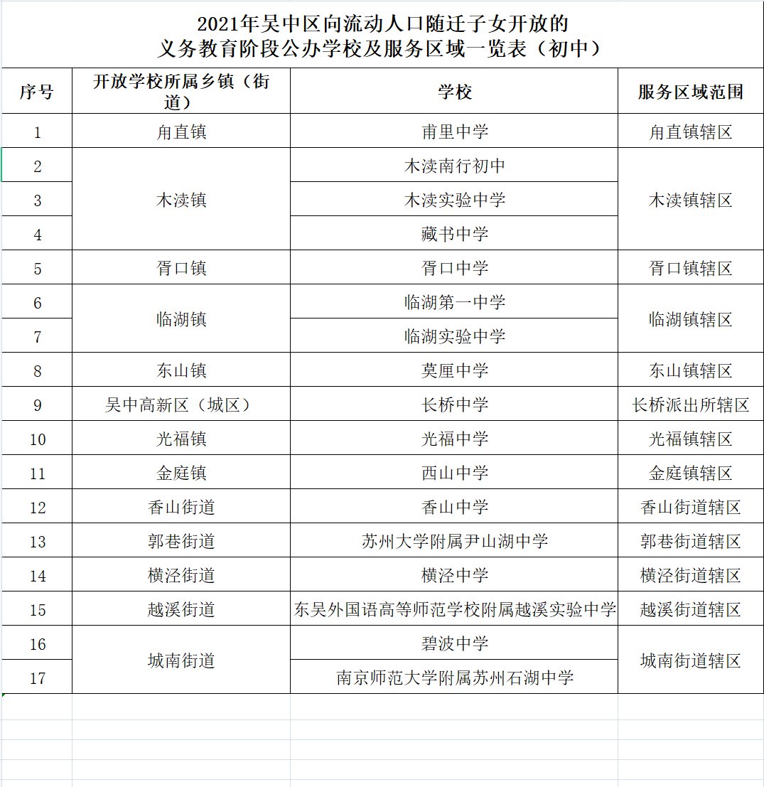 【2021吴中积分入学开放公办学校和服务区域名单】