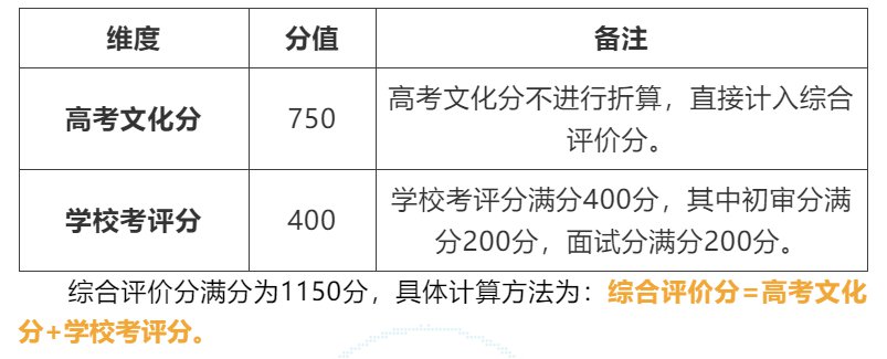 入选考生须参加全国统一高考,高考文化分须达到江苏省特殊类型招生控制线,我校根据考生的高考文化分、学校考评分等维度进行多元加权综合评价,形成综合评价分,评价方法如下: