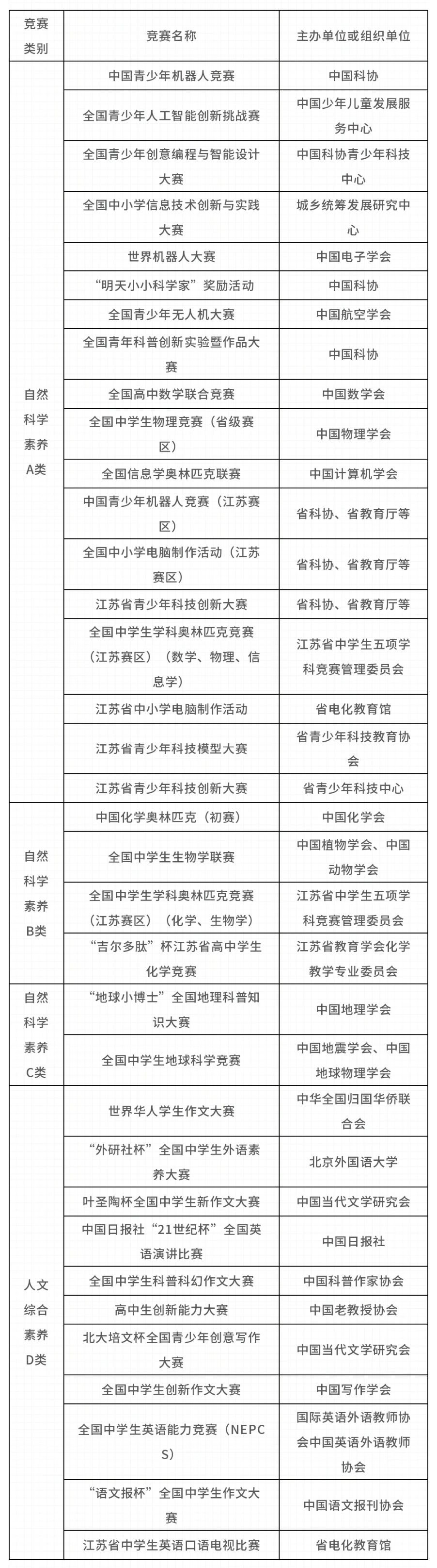 第一条 高中阶段获得自然科学素养A类竞赛省级二等奖(含)以上(再选科目符合相应专业要求,不限报专业(类));