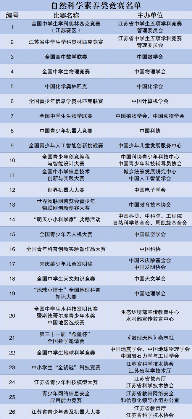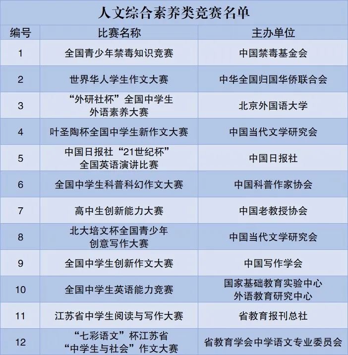 高中阶段在自然科学素养类竞赛或人文综合素养类竞赛中获得省级三等奖及以上。