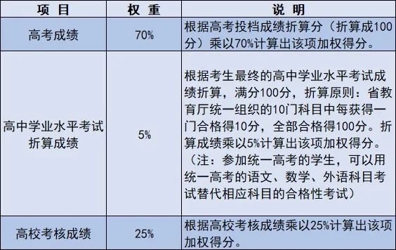 2.我校将根据高考成绩、高中学业水平考试成绩和高校考核成绩,计算入选考生多元加权综合评价分值。按多元加权综合评价得分从高到低排序,按“分数优先、遵循志愿”原则择优录取。