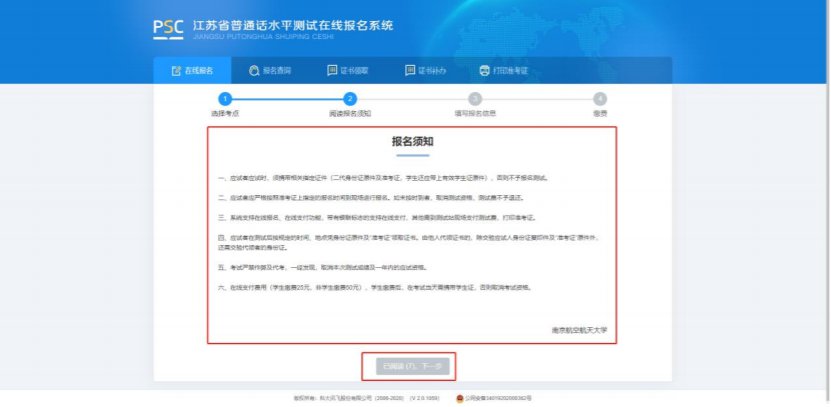 4.阅读“报名须知”,10 秒后可点击“下一步”操作按钮。