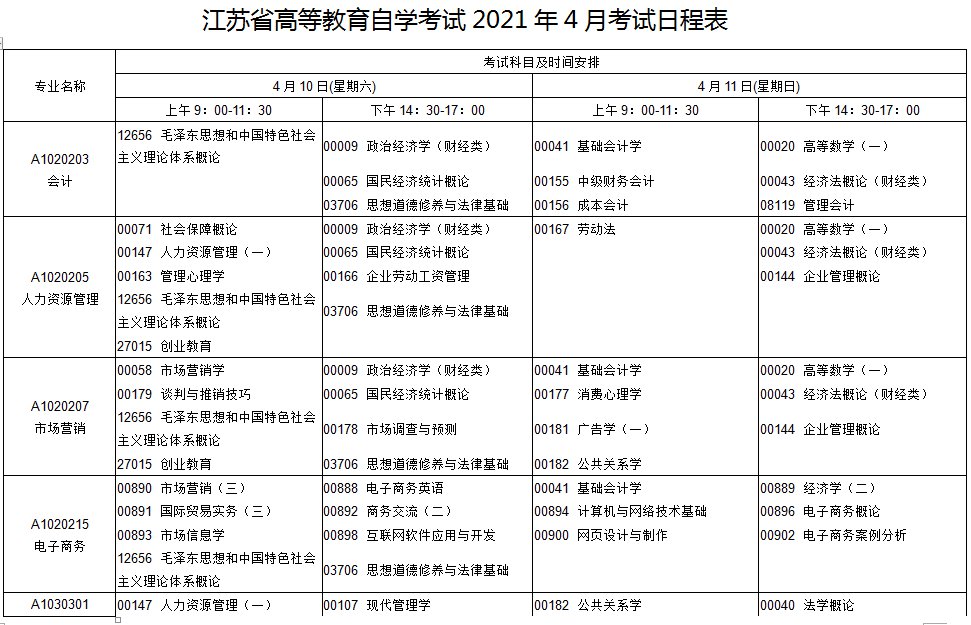 一、2021年江苏省4月自考考试考试将于4月10日、11日两天进行,上午 9∶00-11∶30和下午 2∶30-5∶00。