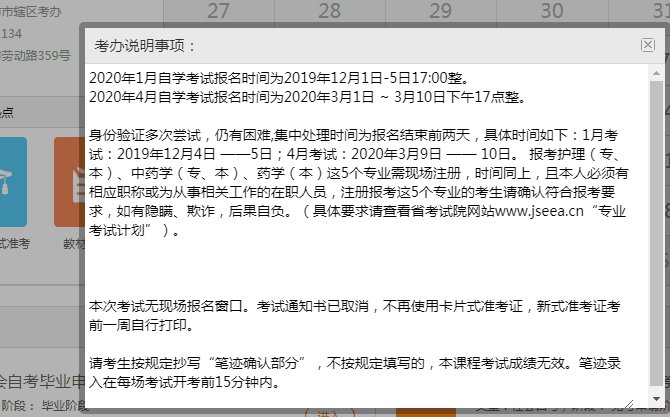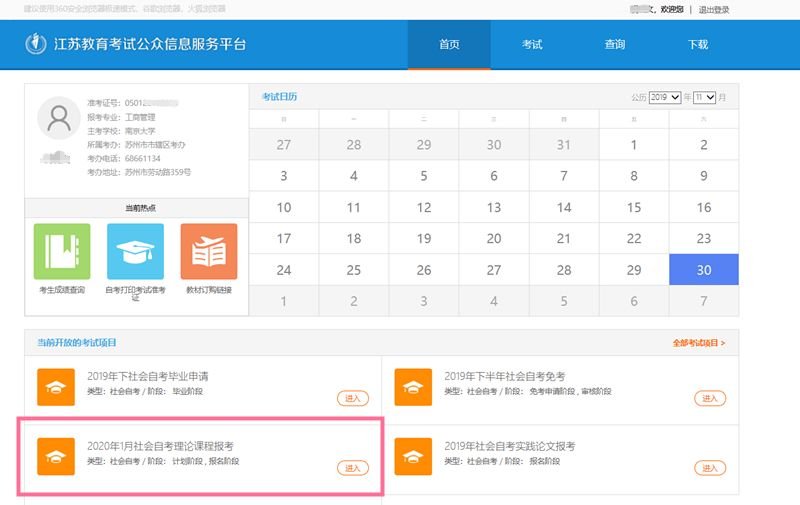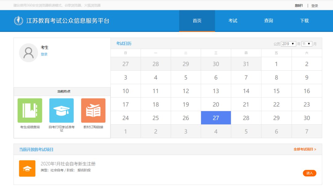 登录江苏教育考试公众信息服务平台,进行新生注册、身份验证、课程报考等工作。