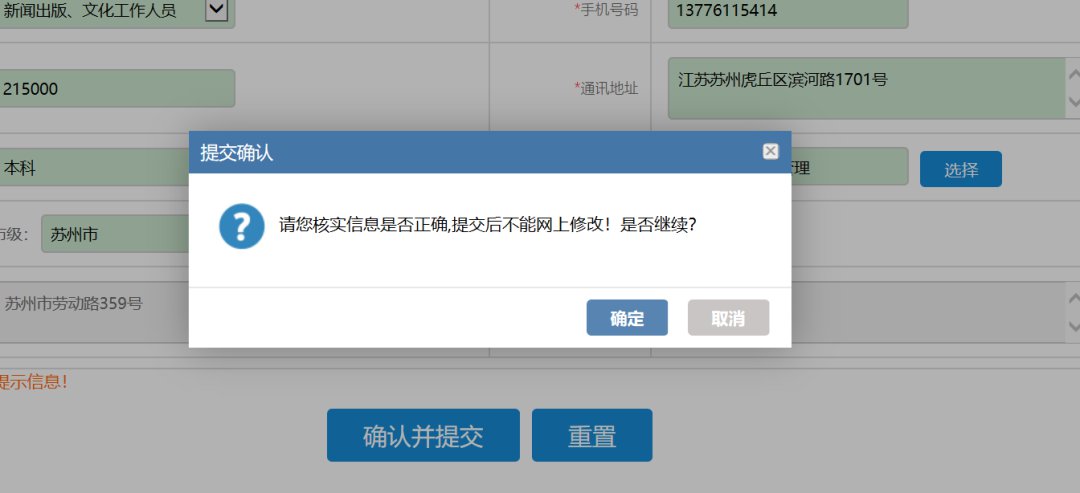 2.所有信息填完后点击“确认并提交",确认无误后点击“确定”