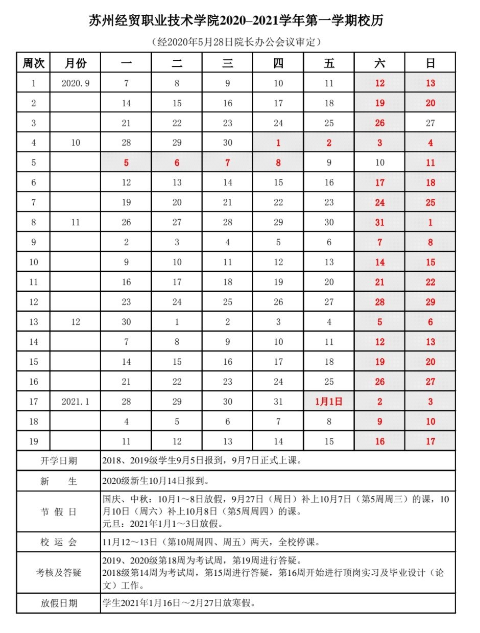 2020-2021年第一学期苏州大学上课时间是于1月15日(星期五)结束,1月16日(星期六)开始放寒假,2月28日新学期开始,总共有43天的假期。