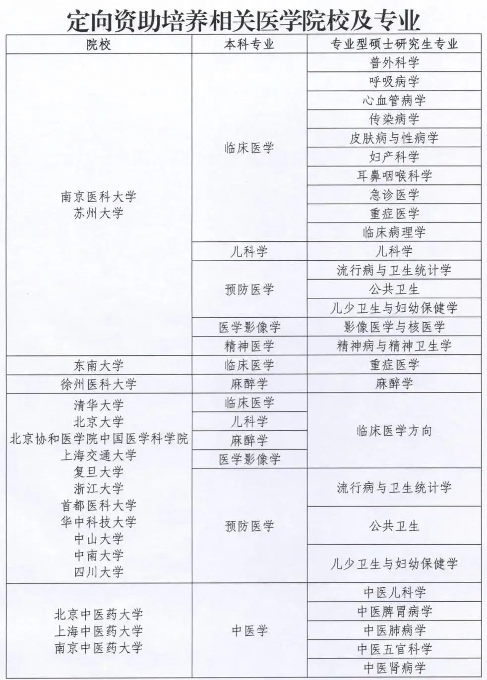 录取为本科及以上(学校不限)的儿科、精神医学、医学影像学等紧缺专业,或报考临床医学专业毕业后愿意回我市从事相应紧缺专业岗位工作,并自愿与市卫生健康委签约的张家港户籍学生。