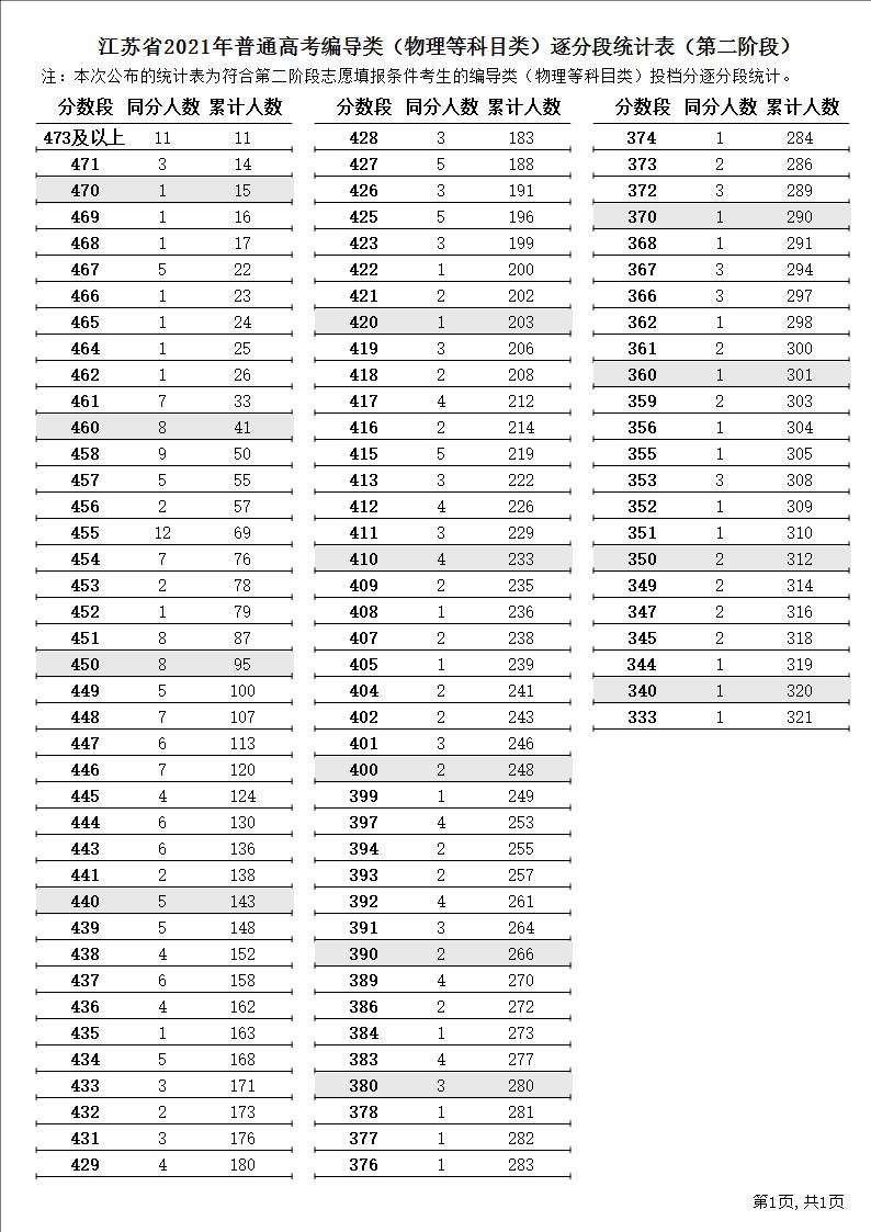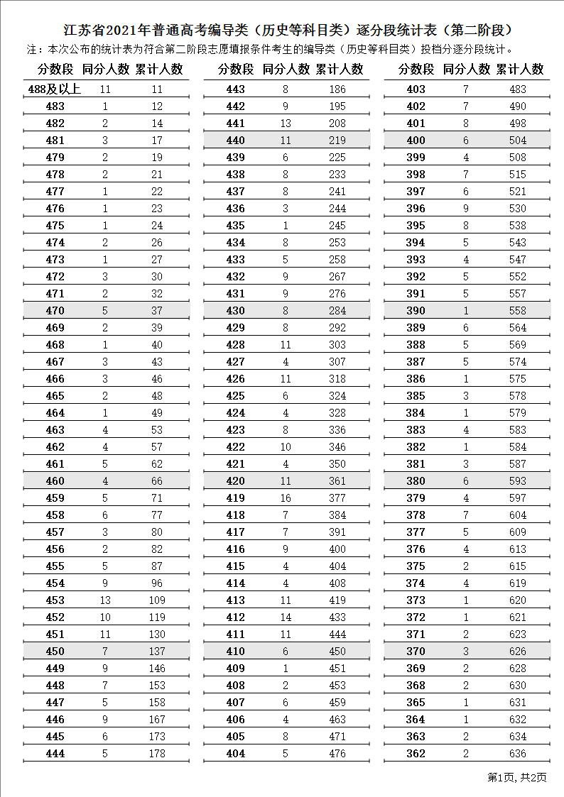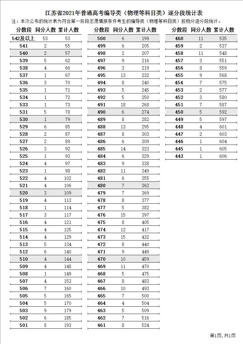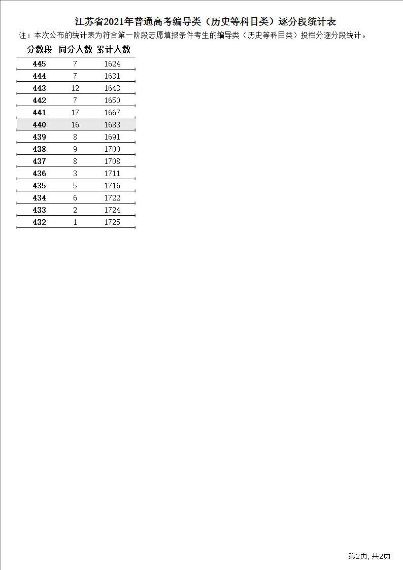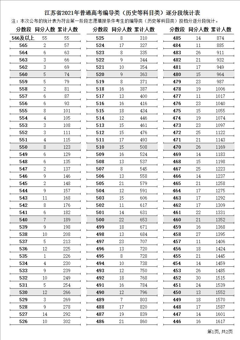 2021年江苏高考逐分段统计表(江苏省2021年普通高考逐分段统计表)