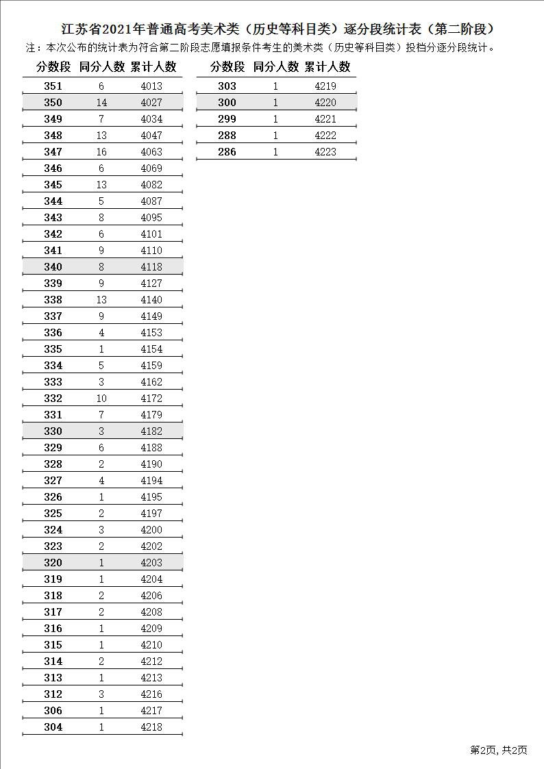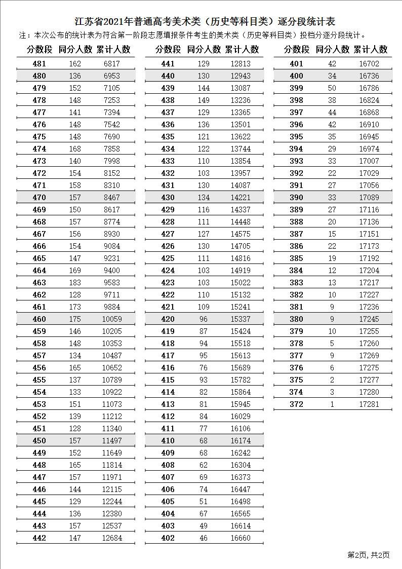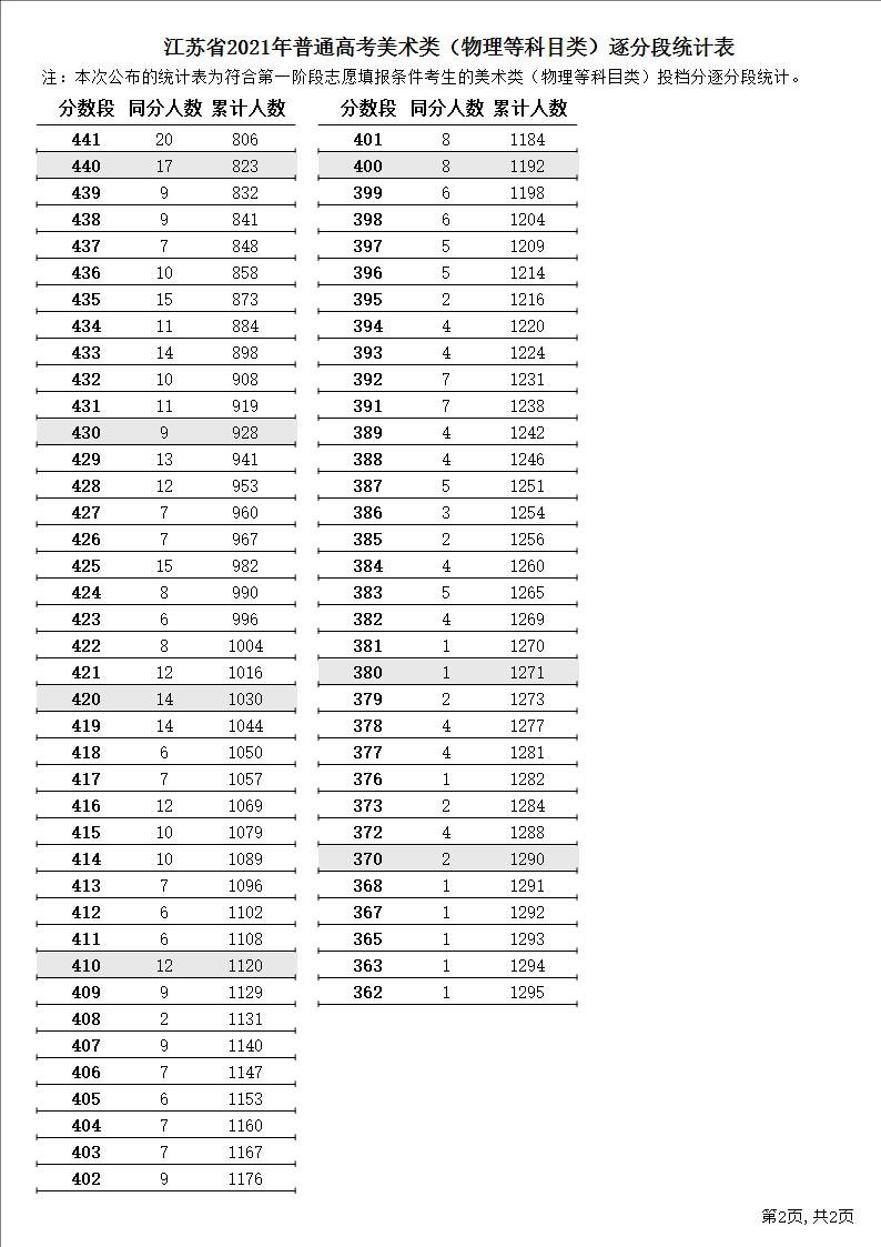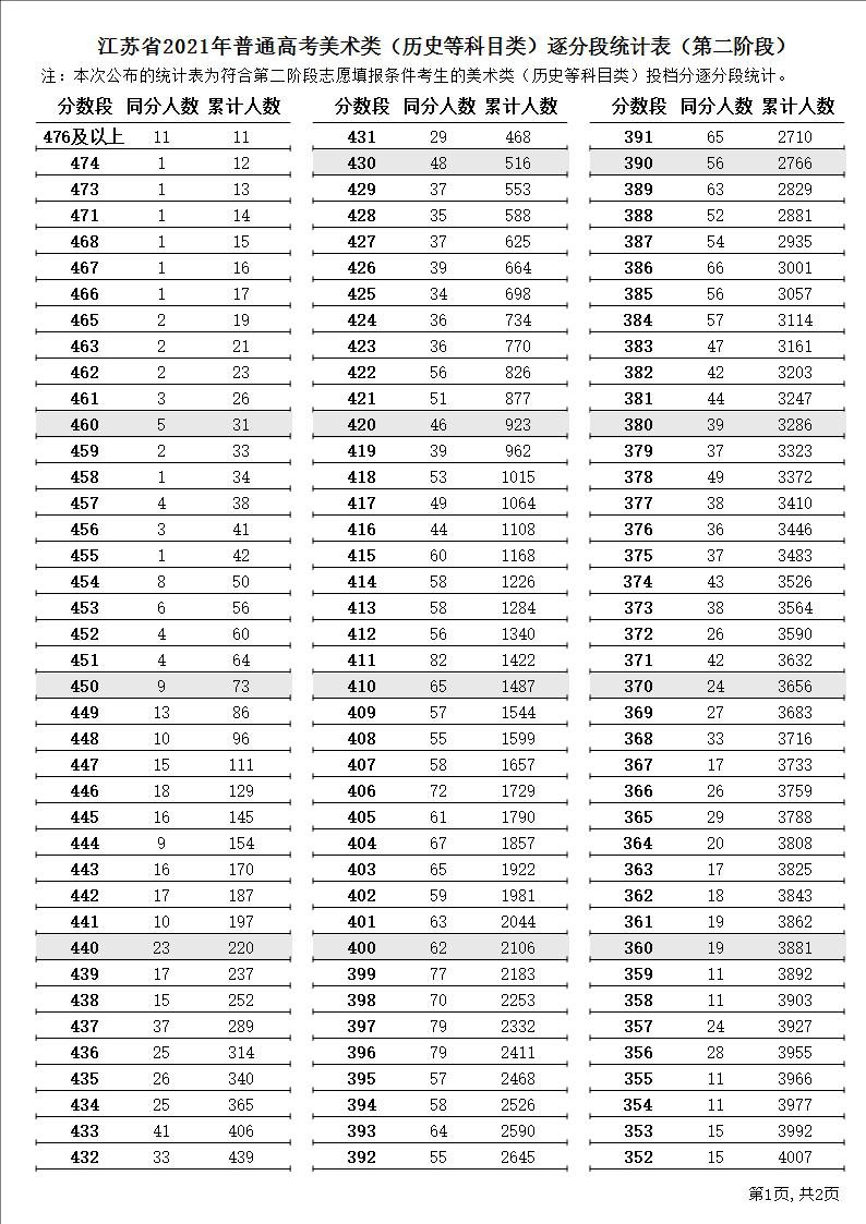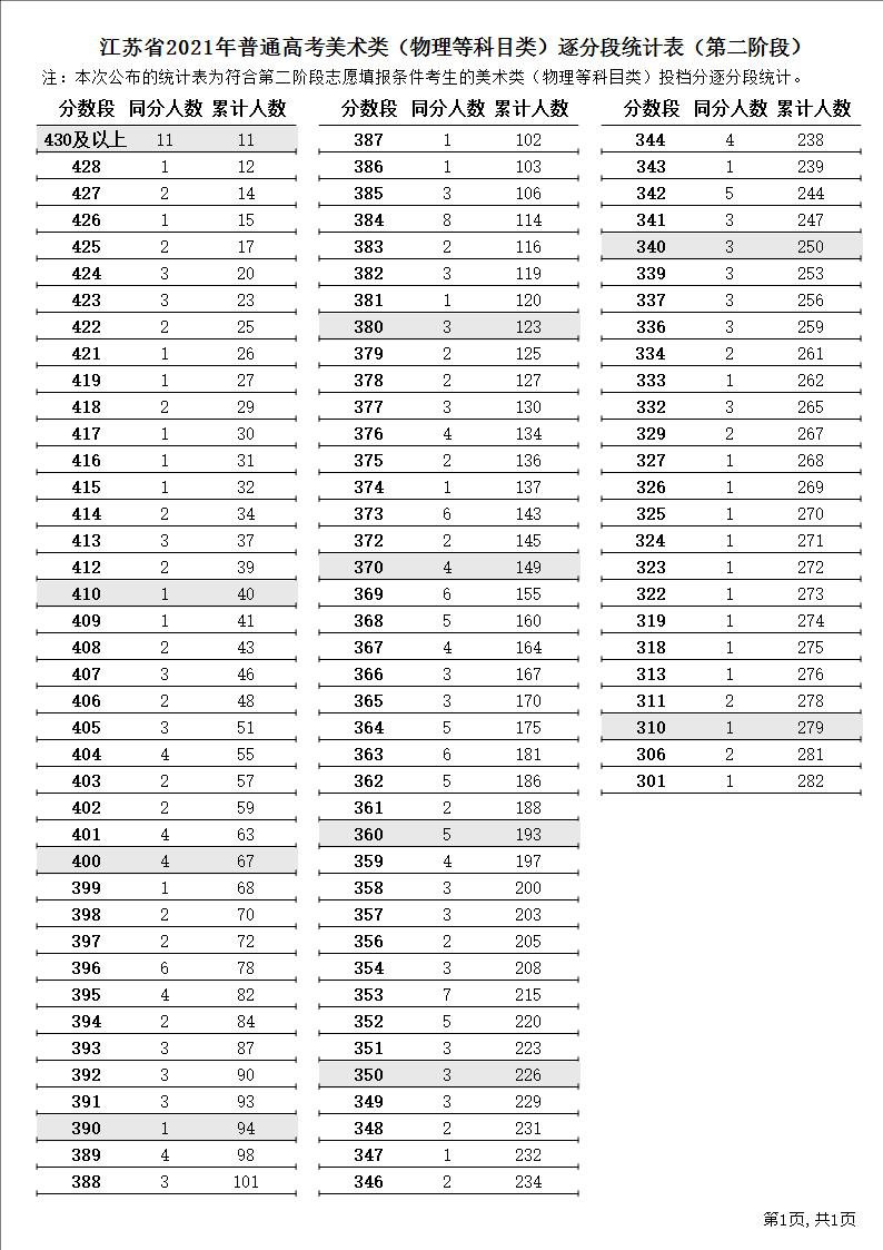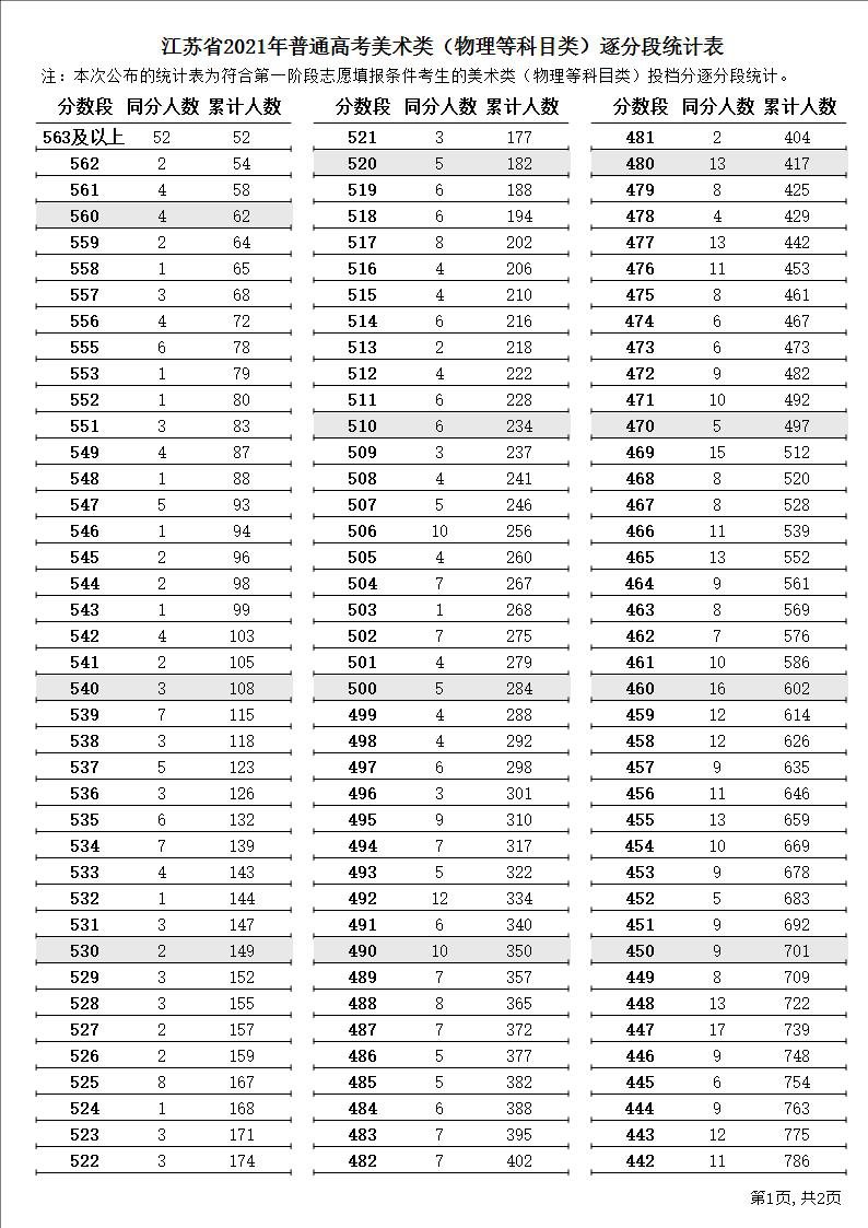 2021年江苏高考逐分段统计表(江苏省2021年普通高考逐分段统计表)