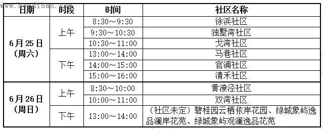 徐浜社区:尹东三期(泾湾路88号)、尹东六期(尹苑路55号)、尹东9村C区(潦泾路169号)